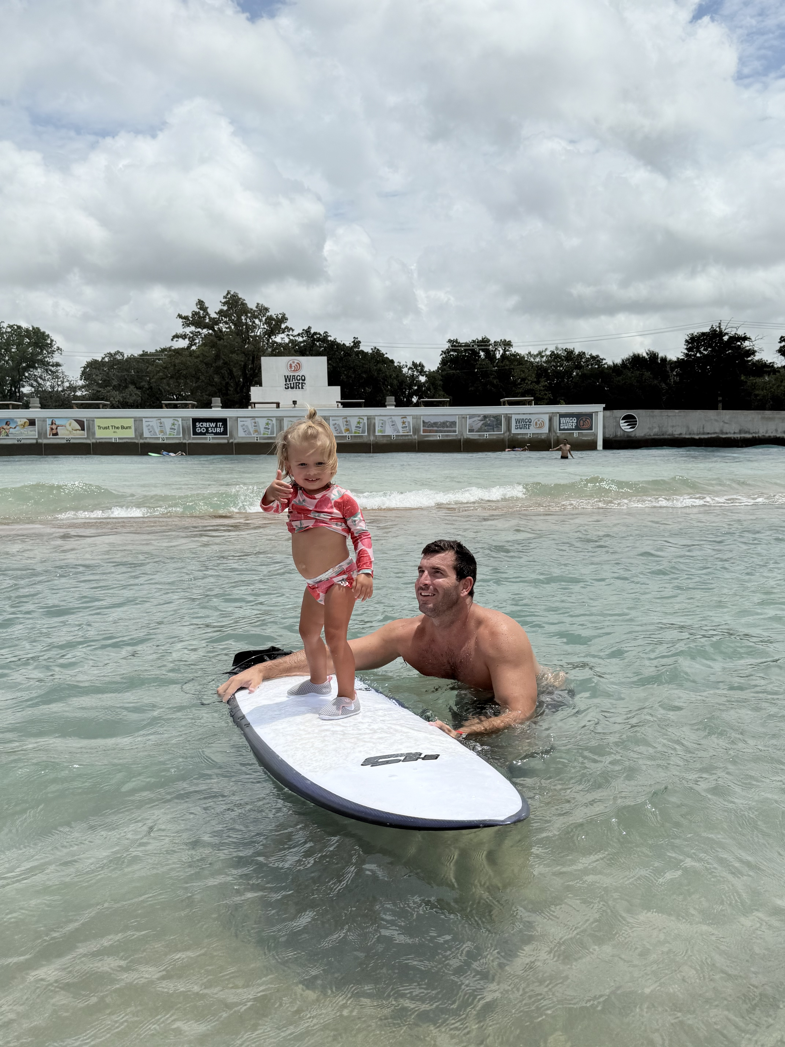 Our family has a thing for water, and @wacosurf_tx makes this trip totally worth it. Whether you're floating along the lazy river, riding waves in the surf lagoon, flying down waterslides, or just lounging in a poolside cabana, it’s a dream setup for both kids and adults.